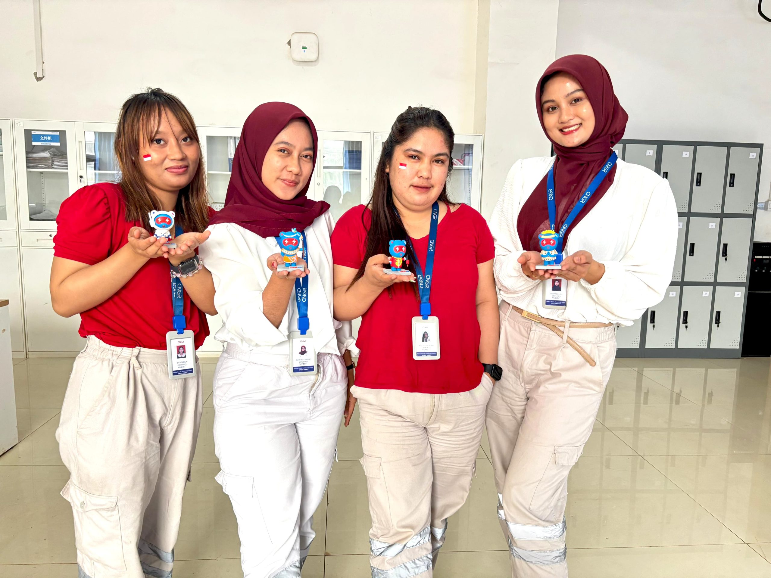 Selepas upacara, panitia membagikan boneka CNGR kepada setiap karyawan. Momen sederhana ini menjadi simbol rasa kebersamaan dan penghargaan terhadap kontribusi seluruh karyawan, baik dari Indonesia maupun Tiongkok.